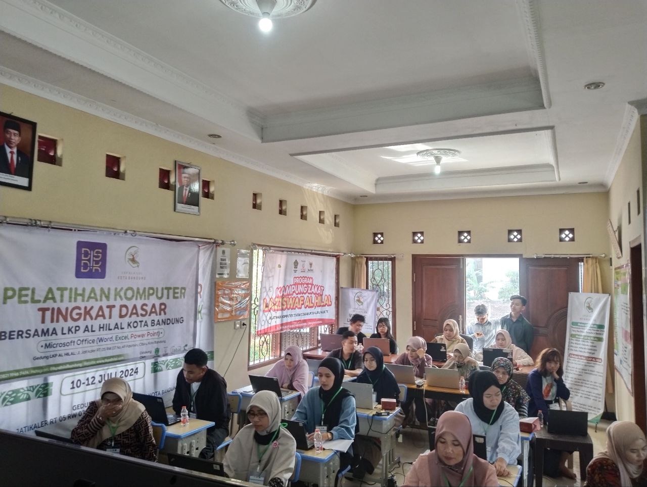 Suasana pemaparan teori, pembelajaran dan praktek penggunaan Microsoft Word tingkat dasar. Dalam Pelatihan Komputer Tingkat Dasar Batch 2 bersama LKP Al Hilal Bandung pada Kamis (22/8) di,